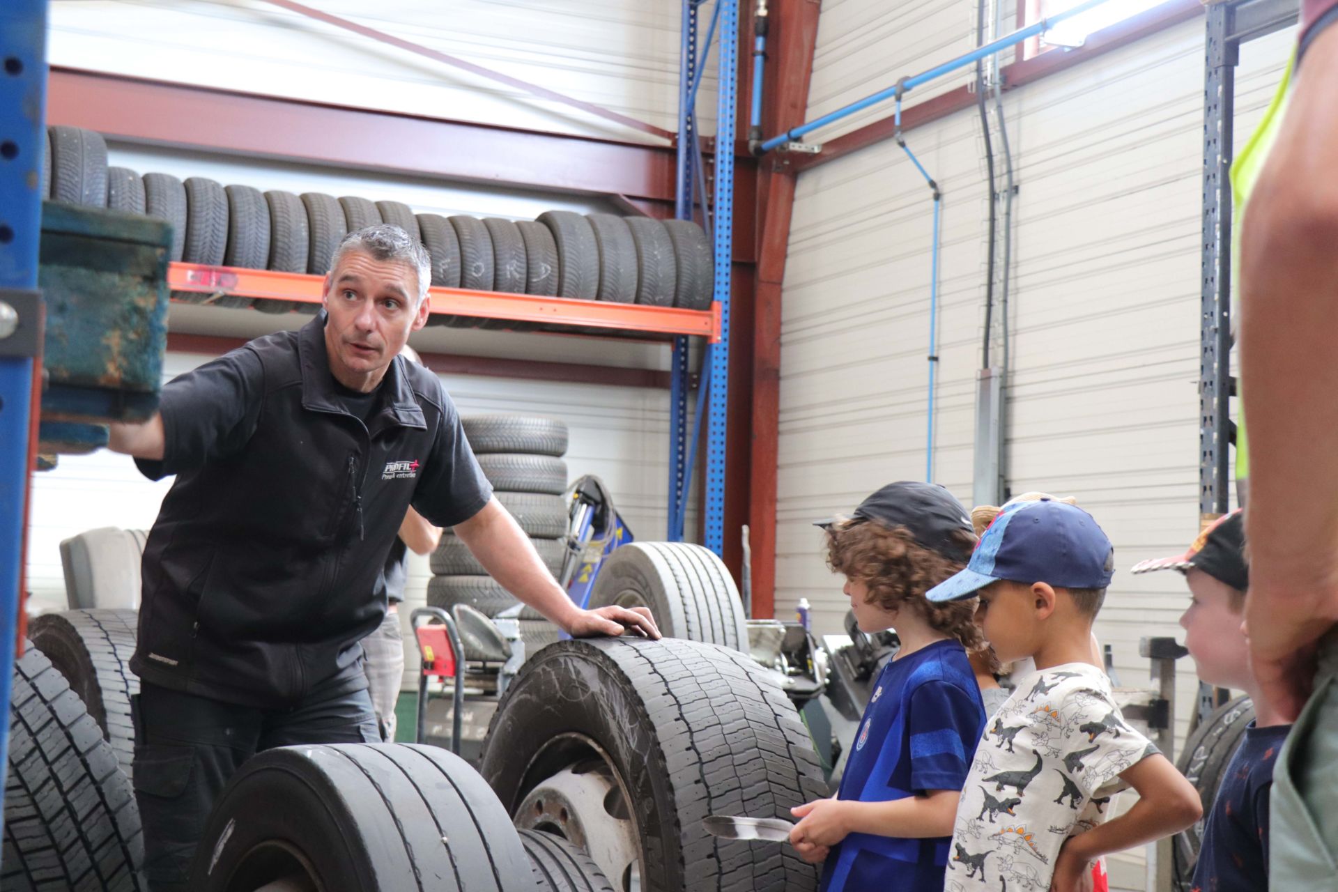 En découverte scolaire des différents moyens de transport, une classe de 28 élèves âgés de 4 à 5 ans a pu découvrir le fonctionnement d’un camion des Transports Cordier et monter dans une cabine pour un petit tour de notre parc de véhicules. Dans la foulée, filles et garçons ont pu visiter l’atelier d’entretien Hyper Trucks avec une partie mécanique et une partie pneumatiques expliquée aux plus jeunes par nos salariés.