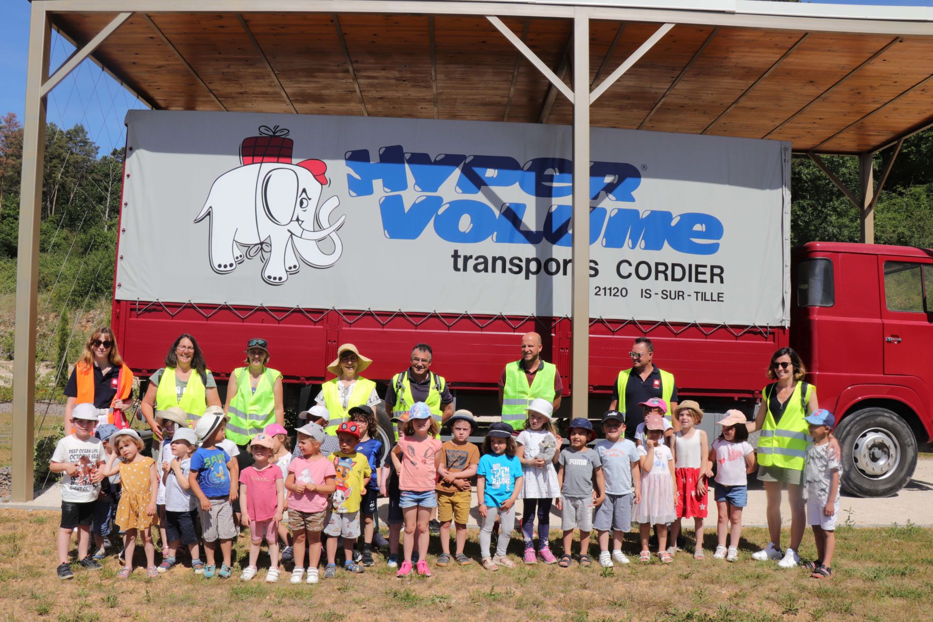 Ce mardi 14 juin 2022, une classe de moyenne et grande sections de l’école Maternelle Matisse (Is-sur-Tille – 21) est venue découvrir une entreprise de transport, chez Hyper Volume.