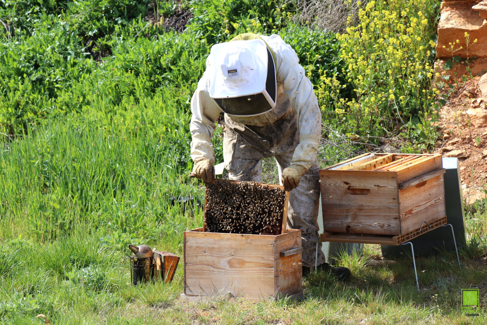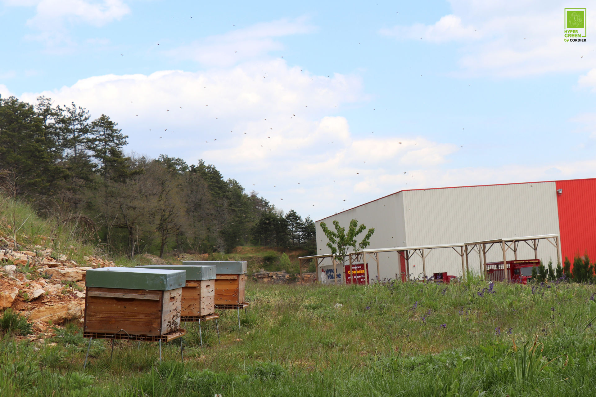 Après l’implantation d’arbres, de haies, de jachères fleuries et de nichoirs, c’est au tour de ruches de se greffer au paysage de notre espace Hyper Green. Grâce à l’accompagnement du paysagiste local Les Jardins de Xa, plusieurs installations ont été mises en place depuis 2020. Cette fois-ci, trois ruches ont été installées. Leurs bienfaits seront visibles à court et long terme : celles-ci favorisent la biodiversité environnante et permettront d’améliorer la pollinisation des cultures à proximité, tout en favorisant la reproduction des abeilles et leur bon patrimoine génétique. Petit bonus : du miel « by Cordier » pourra être symboliquement récolté.