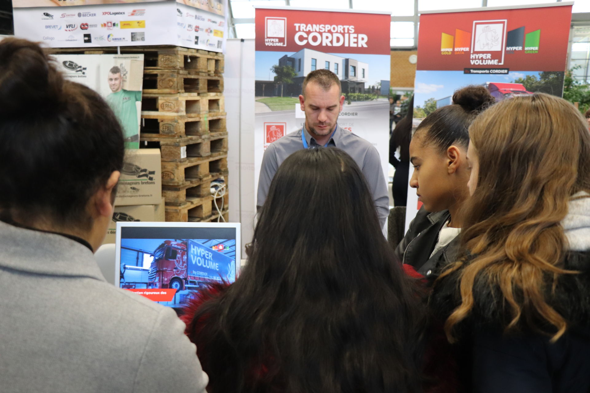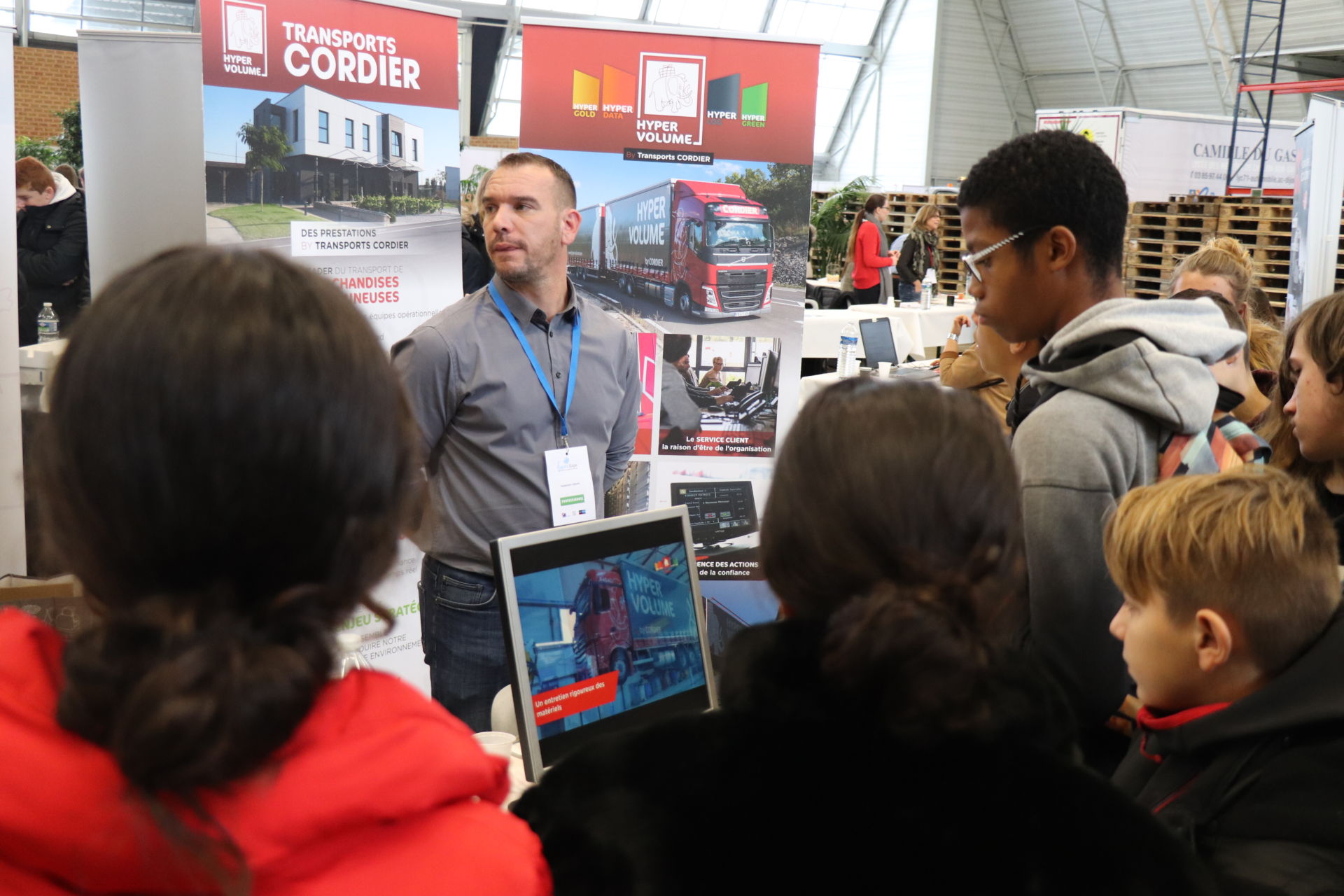 Cette année, les Transports Cordier étaient présents sur le salon en tant qu’exposants. Dans le but de présenter l’entreprise, les différents métiers et les spécificités du transport de marchandises de grand volume, un moniteur-formateur était présent vendredi pour la journée des scolaires. Au programme, une vidéo descriptive de l’entreprise, un quiz sur le transport et des échanges de questions-réponses.
